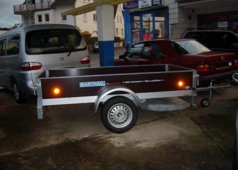 Hochwertiger Anhänger der Fa Barthau,mit vorderer u. hinterer Klappe und Ladungssicherung TOP Zurr 24. ( siehe Bilder ) GL 751 1 Achs ungebremst 14 Zoll / 5 Loch Kasteninnenmaße: 2520 x 1260 x 400 mm Maße über alles: 3885 x 1760 x 910 mm Gesamtgewicht: 750 kg Eigengewicht: 192 kg Nutzlast: 558 kg vordere Klappe Wir haben immer 3 bis 4 weitere Anhänger für Sie ab Lager Neufahrzeuge, Gebrauchtfahrzeuge und Vorführer Gerne unterbreiten wir Ihnen ein persönliches Angebot.