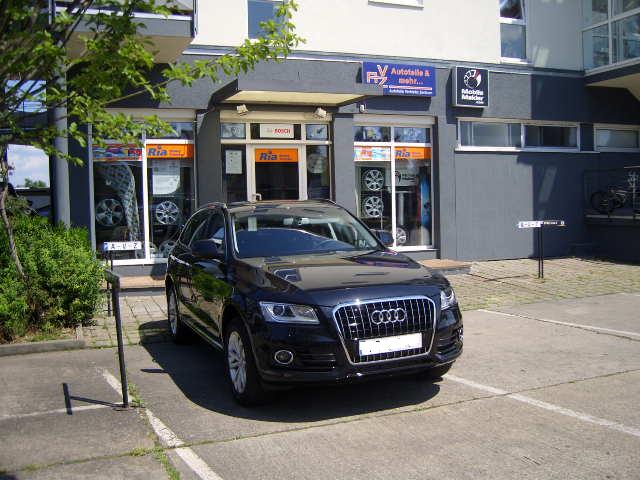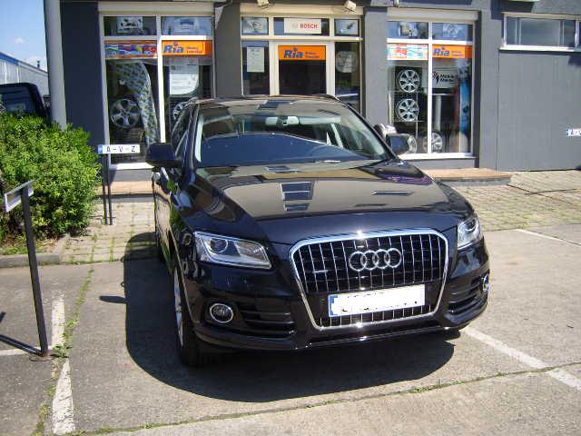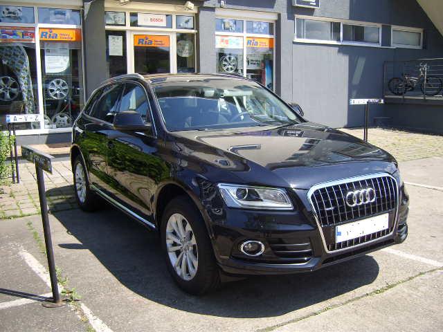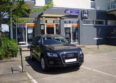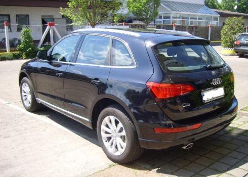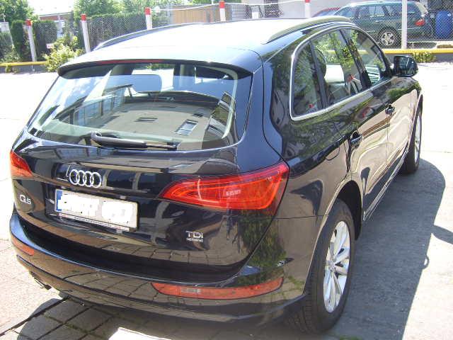 Audi Q5 Quattro 2.0 TDI S-Tronic .Klimaautomatik, Multi-Media-Interface MMI, Glanz-Paket, Einparkhilfe vorn und hinten- optisch (APS Plus), LM Felgen, Reifen 235/65 R17 ...W, Kopf-Airbag-System (Sideguard), Seitenairbag vorn, Airbag Fahrer-/Beifahrerseite, Anti-Blockier-System (ABS), Elektron. Stabilitätskontrolle (ESC), Rußpartikelfilter, Servolenkung elektro-mechanisch, Getriebe 7-Gang - Doppelkupplungsgetriebe S-tronic, Zentralverriegelung mit Fernbedienung, Fensterheber elektrisch vorn + hinten, Handyvorbereitung (Bluetooth) mit Freisprecheinrichtung, Vorrüstung Mobiltelefon/Handy mit Bluetooth-Schnittstelle, Dachreling (Aluminium), Multifunktions-Sportlederlenkrad , Fahrer-Informations-System (FIS) mit Farbdisplay, Tagfahrlicht, Tagfahrlicht LED, Lenkrad (Sport/Leder - 3-Speichen) mit Multifunktion, Bremsanlage regenerativ (Rekuperation), Fahrassistenz-System: Bergabfahrassistent, Parkbremse elektro-mechanisch, SCR-System (AdBlue-Technologie), Start/Stop-Anlage, Elektron. Differentialsperre (EDS), Mittelarmlehne vorn mit Fach, Antriebs-Schlupfregelung (ASR), Reifenkontroll-Anzeige, Wärmeschutzverglasung grün getönt, Außenspiegel elektr. verstell-- heiz- und anklappbar, Rücksitzlehne geteilt/klappbar, Innenausstattung: Dekoreinlagen Monometallic, Außenspiegel Wagenfarbe, Radstand 2807 mm, Sitzbezug / Polsterung: Stoff, Isofix-Aufnahmen für Kindersitz, Nebelscheinwerfer integriert, Wegfahrsperre (elektronisch)